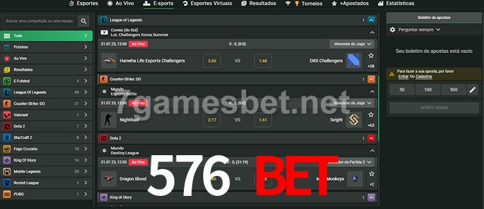 A aposta 576 bet oferece aos jogadores a experiência mais conveniente de apostas em eSports!